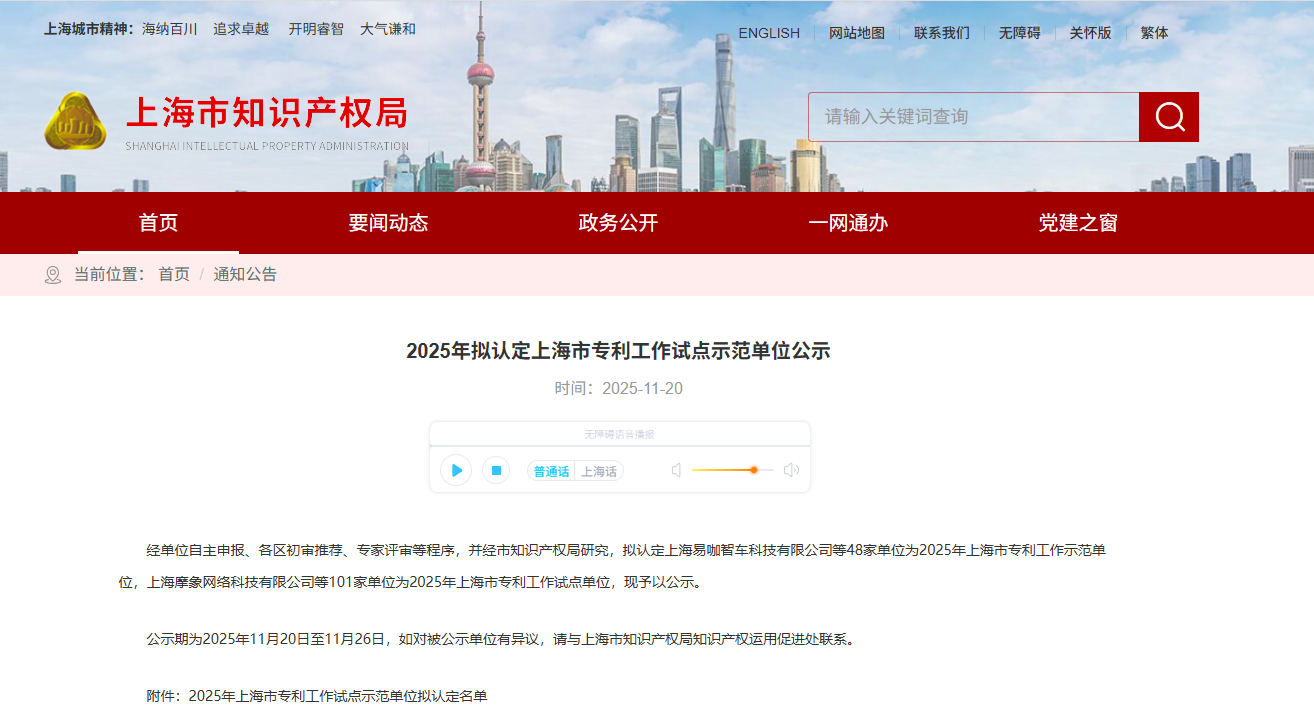 近日,上海市知识产权局发布了“2025年拟认定上海市专利工作试点示范单位公示”,康圣环球旗下子公司上海信诺佰世医学检验有限公司(以下简称“信诺佰世”)成功获评入选,荣获“2025年上海市专利工作试点企业”!这标志着公司在知识产权创造、运用、管理和保护方面的综合实力获得了官方认可。